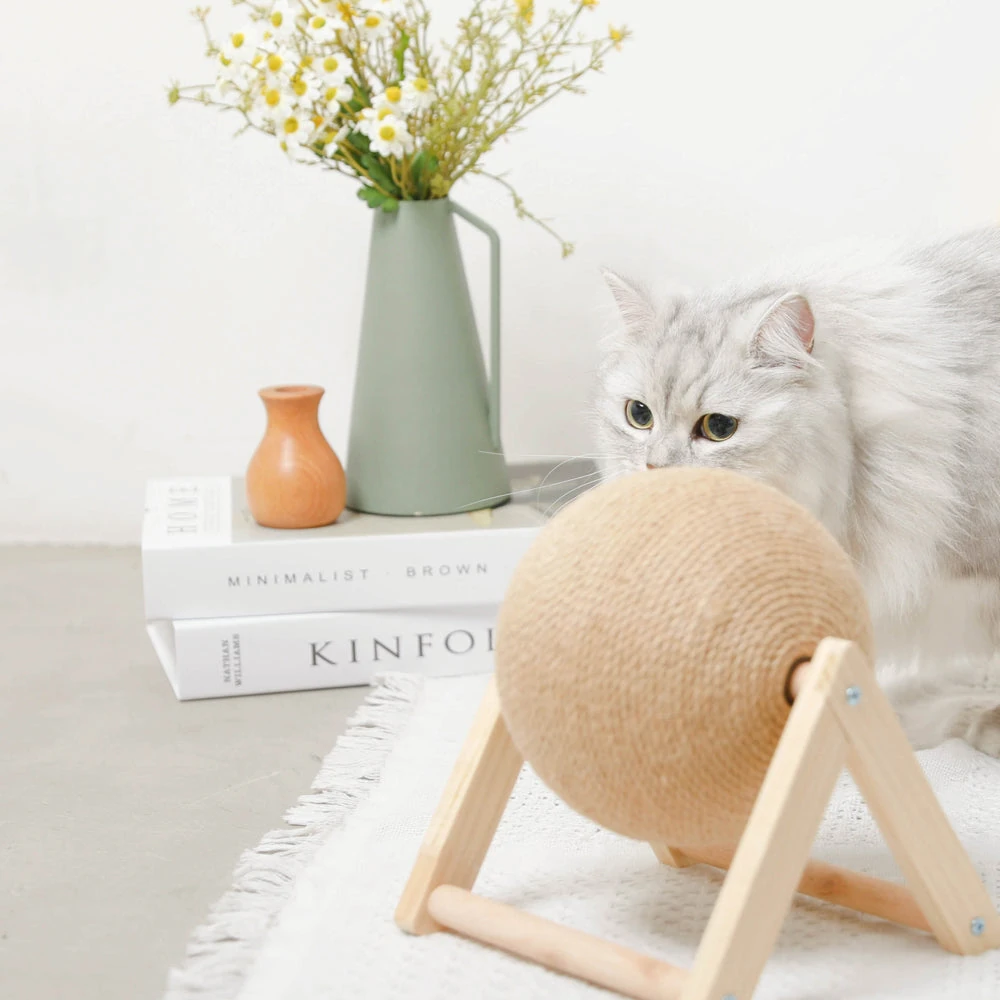 持続可能な天然素材を厳選して使用しています。爪とぎ部分には高密度天然麻ロープを採用し、猫の爪の健康を考慮した適度な硬さを実現しています。