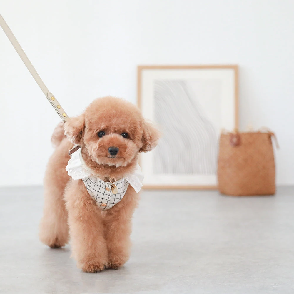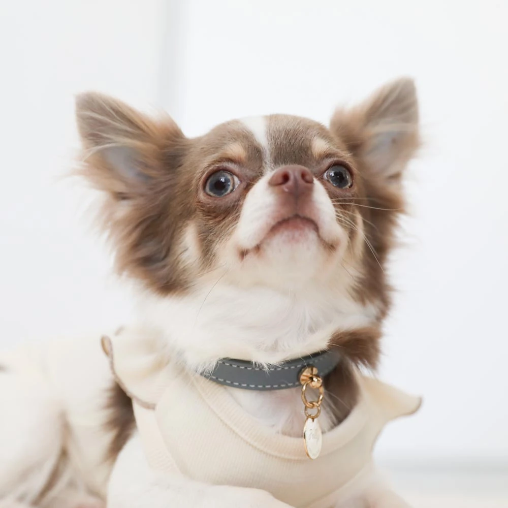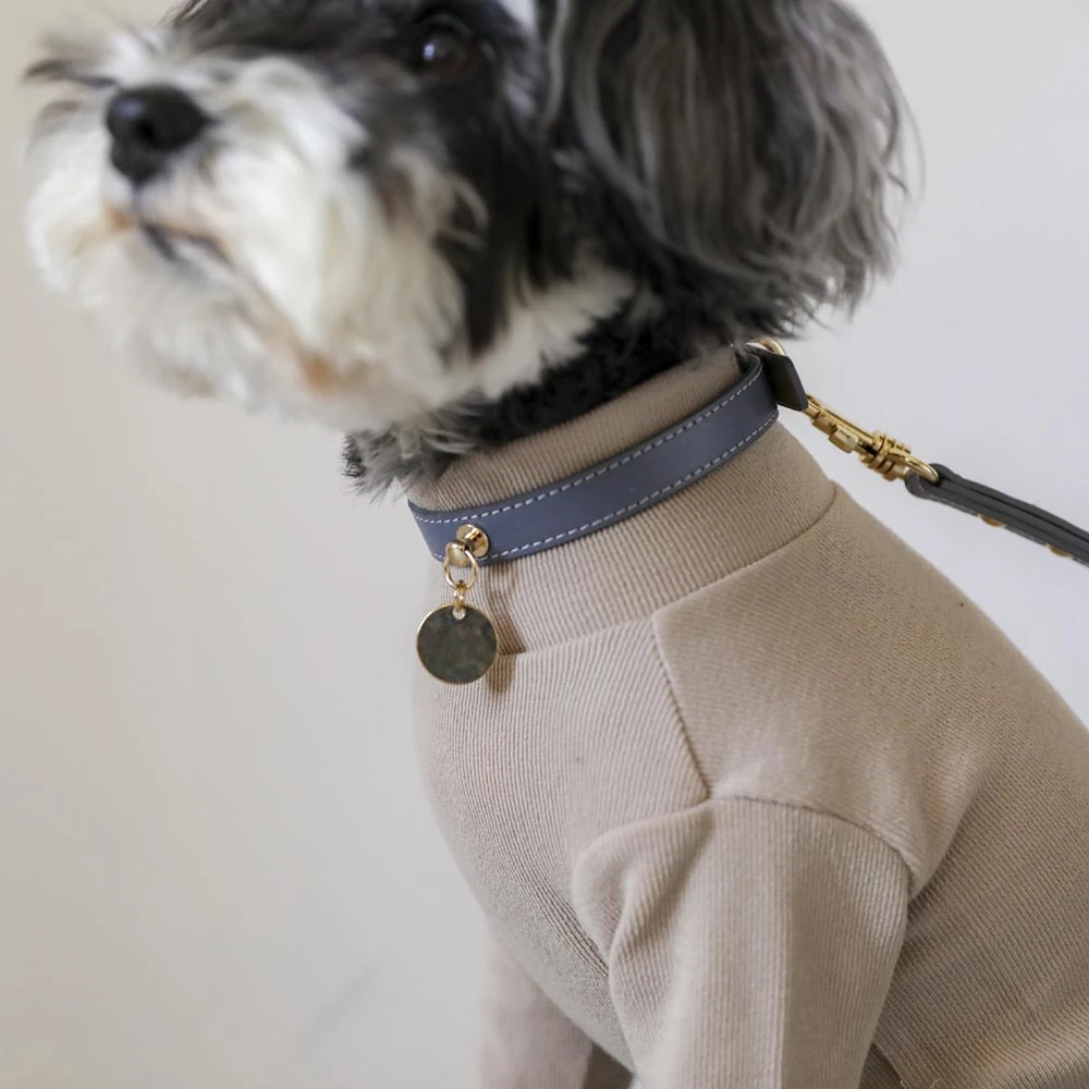 サークルチャームレザーカラー MEDIUMのデザインは、「シンプルでありながら特別感のある」をコンセプトにしています。過剰な装飾を排した洗練されたデザインは、あらゆる犬種の魅力を引き立てます。特徴的なサークルチャームは、ブランドの象徴であると同時に、リード取り付けの機能性も兼ね備えた実用的なデザイン要素です。
