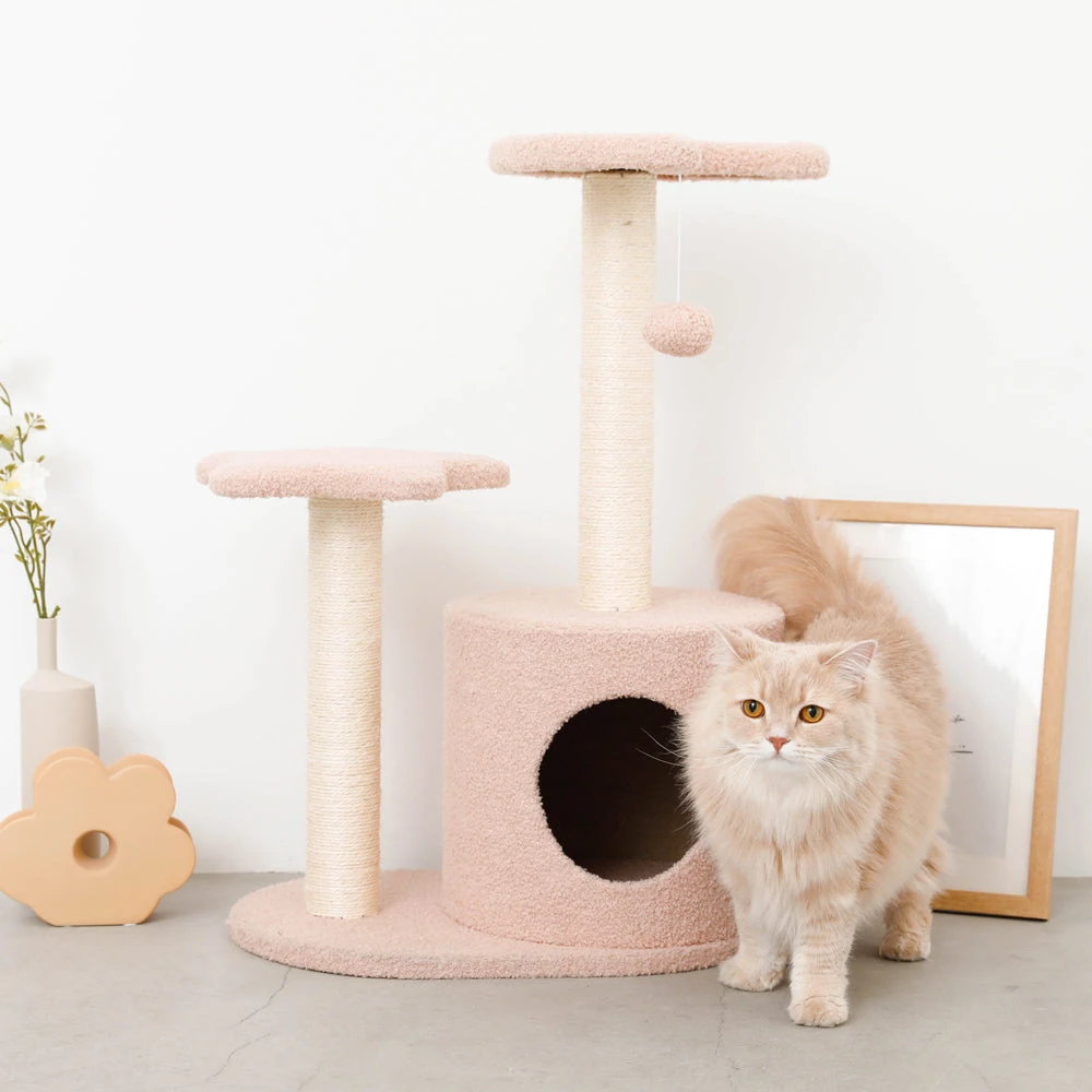 すべての素材は厳選された国内調達品を使用。カーペットは撥水加工で汚れにくく、耐久性テストをクリアしたもののみを採用しています。組み立て式ですが、プロの技術者が設計した接合部は非常に頑丈で、猫の激しい遊びにも長期間耐えられる構造です。